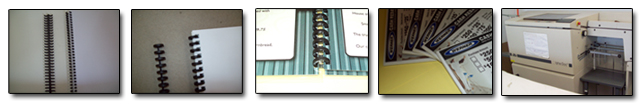 We also offer GBC® ProClick® spines, a new way to mechanically bind documents featuring the ability to do quick edits by “unzipping” and “zipping” the teeth of this circular hard plastic spine. Our Alpha-Doc® punching machine can punch the GBC® rectangular holes in your paper before or after printing.